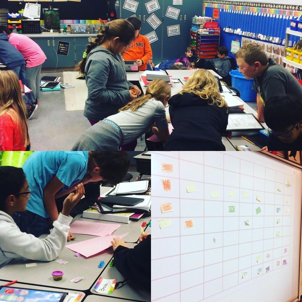 Make sure students know that only one student can come up to the board from their group AND touch/move post-its. I had whole groups up at the beginning, so I had to stop and redirect. I explained that I wanted it to be a lot like The Price Is Right (yes, I got some blank stares) where they get input from the audience, but ultimately it is the front person’s decision as to what to do with the post-it.